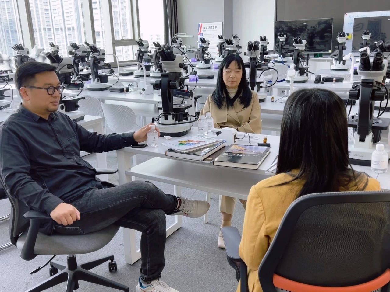 广州华商学院珠宝学院朱晓红院长、张宪法副院长、专任教师曹旭峰前往深圳GUILD吉尔德宝石教育学院,就珠宝培训相关内容展开交流会谈。