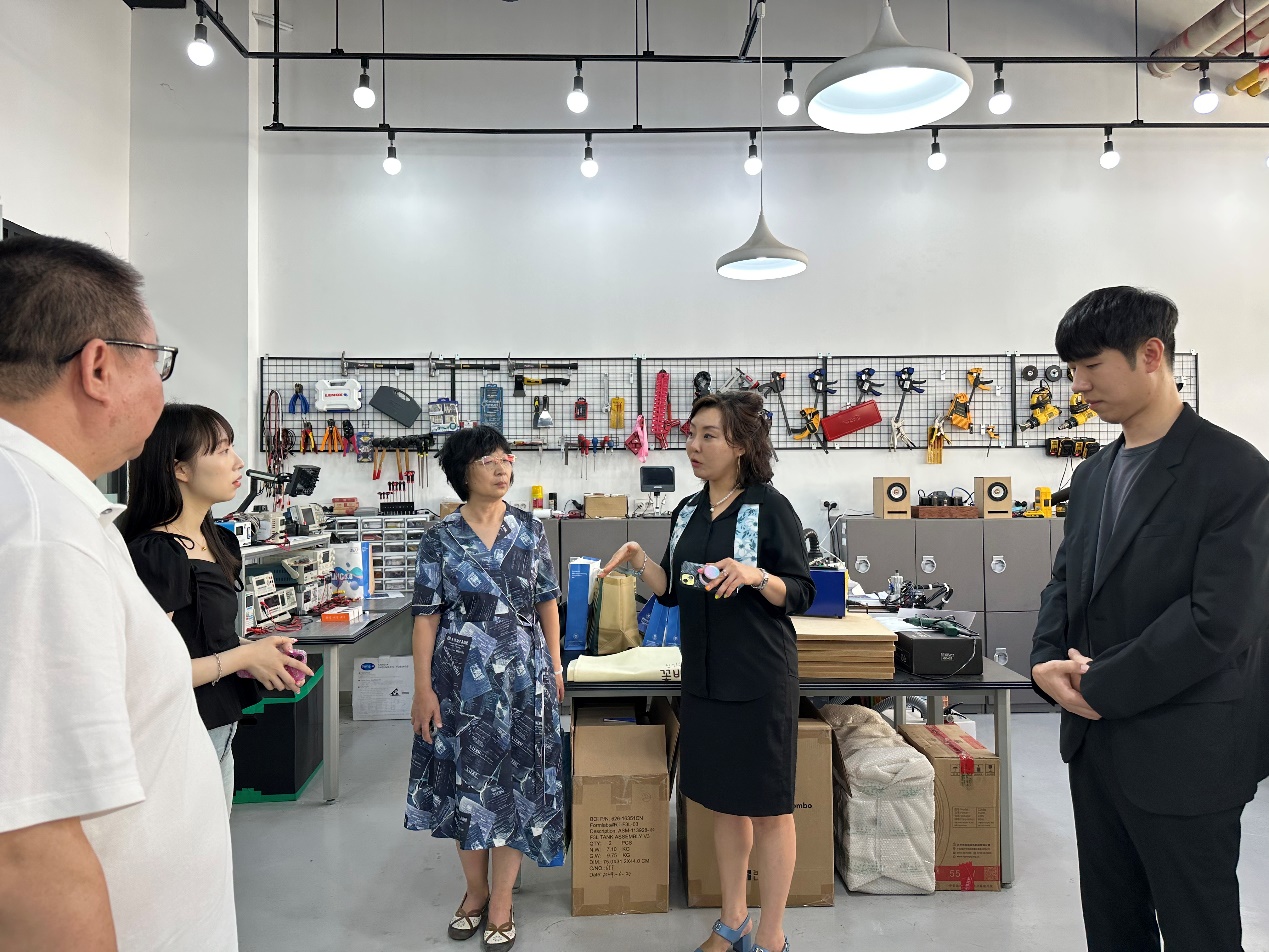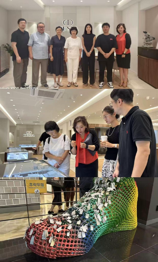 在釜庆大学,珠宝学院赴韩学术交流团参观了大学博物馆,并与国际交流处留学生支援组组长、设计学院及传媒学院的教授专家进行恳谈,分享了AI时代下的教学挑战与管理经验。之后,交流团在设计学院教授引导下,参观了学院特色设计空间,并近距离观摩学生通过 3D 打印技术制作的创意作品模型,深入了解釜庆大学在实践教学与科技创新融合方面的成果。
