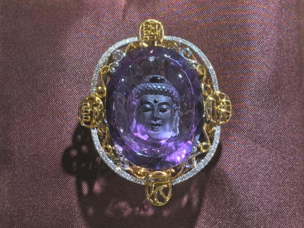 陈明建大师的水晶镶嵌雕刻作品将水晶的纯净与镶嵌工艺的精巧相结合,创造出既庄严又充满艺术感的佛头形象,展现了传统题材与现代工艺的完美融合。