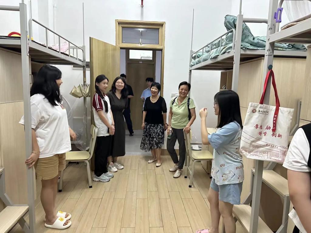 晚上,珠宝学院领导、教师一同走访新生宿舍,与新生积极交流,帮助同学们解决生活问题。朱院长希望大家珍惜青春时光、珍视宿舍室友,打造积极向上、干净整洁的宿舍生活氛围。相信在同学们的共同努力下,大家能够早日适应大学生活,以饱满的精神状态投入全新的大学学习之中。
