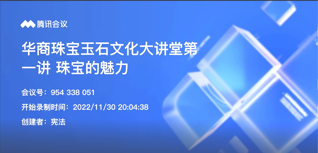 为了推进我校学科建设,提升学术水平,加强师资团队建设和提高人才培养质量,全面落实人才培养目标,华商珠宝学院“珠宝玉石文化大讲堂”正式启动。2022年11月30日20:00,300余人共聚云端,见证“华商珠宝玉石文化大讲堂”正式启动,并聆听中国地质大学(武汉)珠宝学院院长尹作为教授带来的首场演讲:《珠宝的魅力》。“华商珠宝玉石文化大讲堂”将邀请海内外专家、学者围绕珠宝产业政策、行业趋势、珠宝与设计、珠宝材料、 珠宝玉石文化等领域开展讲座。